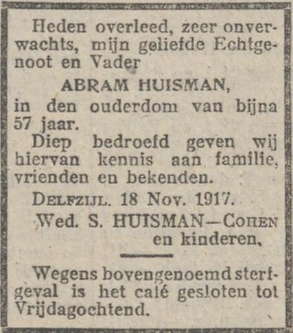 Na het overlijden van haar man Abram Huisman zette caféhoudster Saartje Cohen van den Berg, (Delfzijl, 25 mei 1874 – Auschwitz, 21 september 1942) het café voort. Zij woonde alleen in de bijbehorende woning