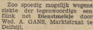 Koopman Samuel Gans (Delfzijl, 19 november 1897 – Sobibor, 26 maart 1943) woonde hier met zijn vrouw Frouktje Alexander Andries van Dam (Groningen, 6 januari 1904 – Sobibor, 26 maart 1943). Zij hadden 5 kinderen: Alexander (Delfzijl, 28 oktober 1938 – Sobibor, 26 maart 1943), Lion (Delfzijl, 28 oktober 1938 – Sobibor, 26 maart 1943), Gelle (Delfzijl, 10 augustus 1935 – Sobibor, 26 maart 1943), Simon (Delfzijl, 21 juni 1931 – Sobibor, 26 maart 1943), en Keetje (Delfzijl, 15 mei 1933 – Sobibor, 26 maart 1943).