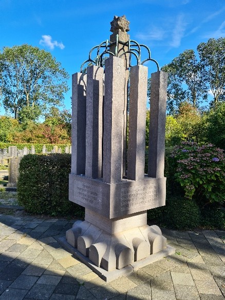 Het monument op de Joodse begraafplaats aan de Iepenlaan in de stad Groningen herinnert aan de in de Tweede Wereldoorlog omgekomen Groninger Joden.