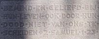 In de basis is in het Hebreeuws en Nederlands een tekst aangebracht:
